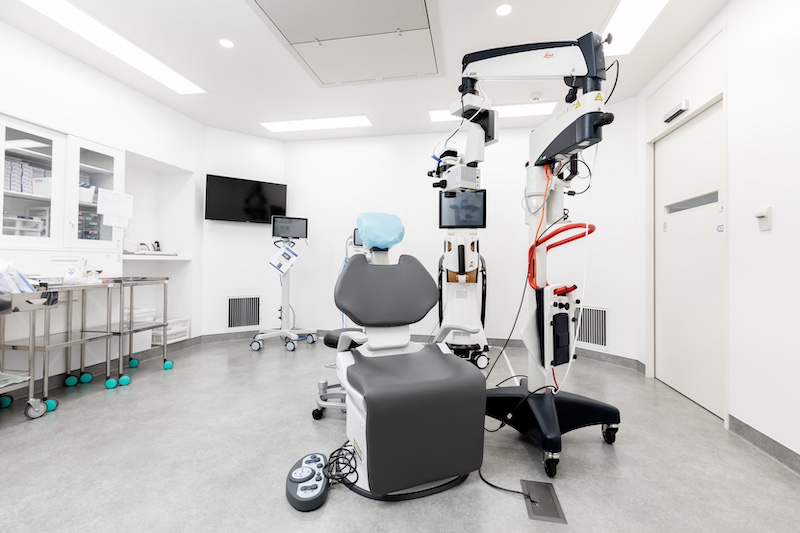 白内障や緑内障などの眼科手術で使用する顕微鏡です。眼の細かな構造を高倍率で観察しながら、精密で安全な手術を行います。